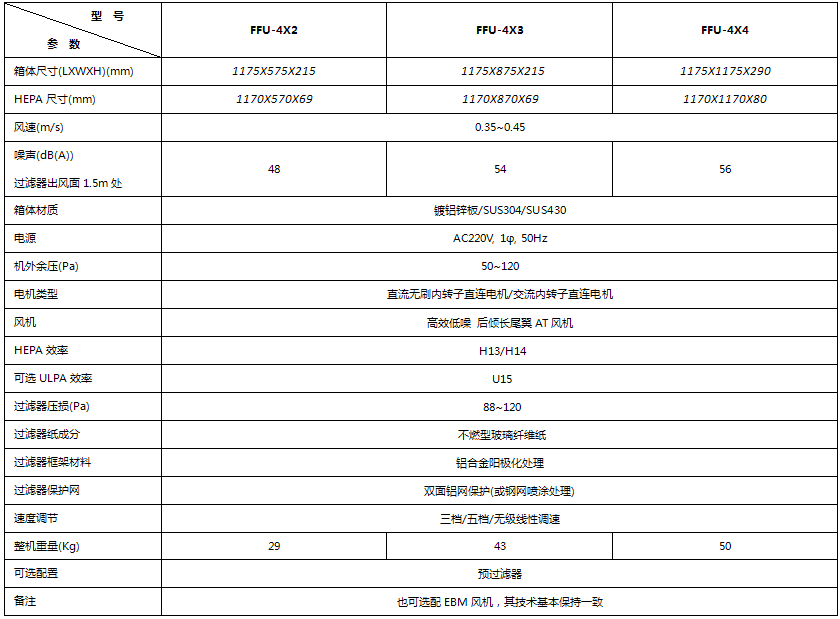 - 产品型号: FFU-4*2/4*3/4*4